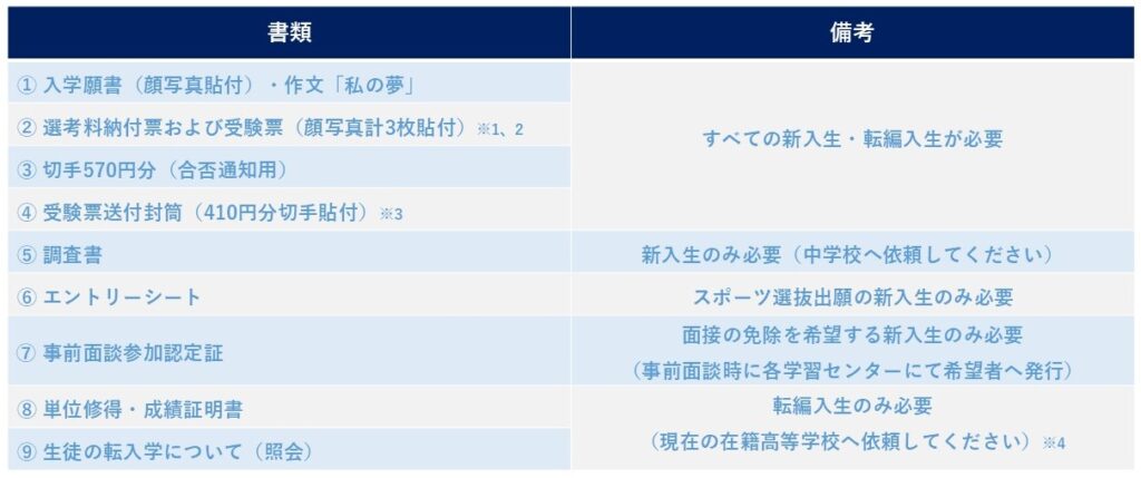 ※4 編入の場合は⑧のみを直近で在籍していた高等学校へ依頼してください。⑨は不要です。