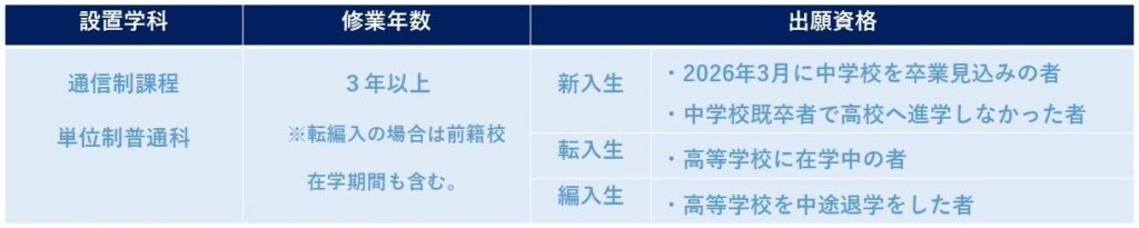 ※ 転編入については、書類選考および面接を実施し、年度途中の出願者には個別に選考日程を設定します。